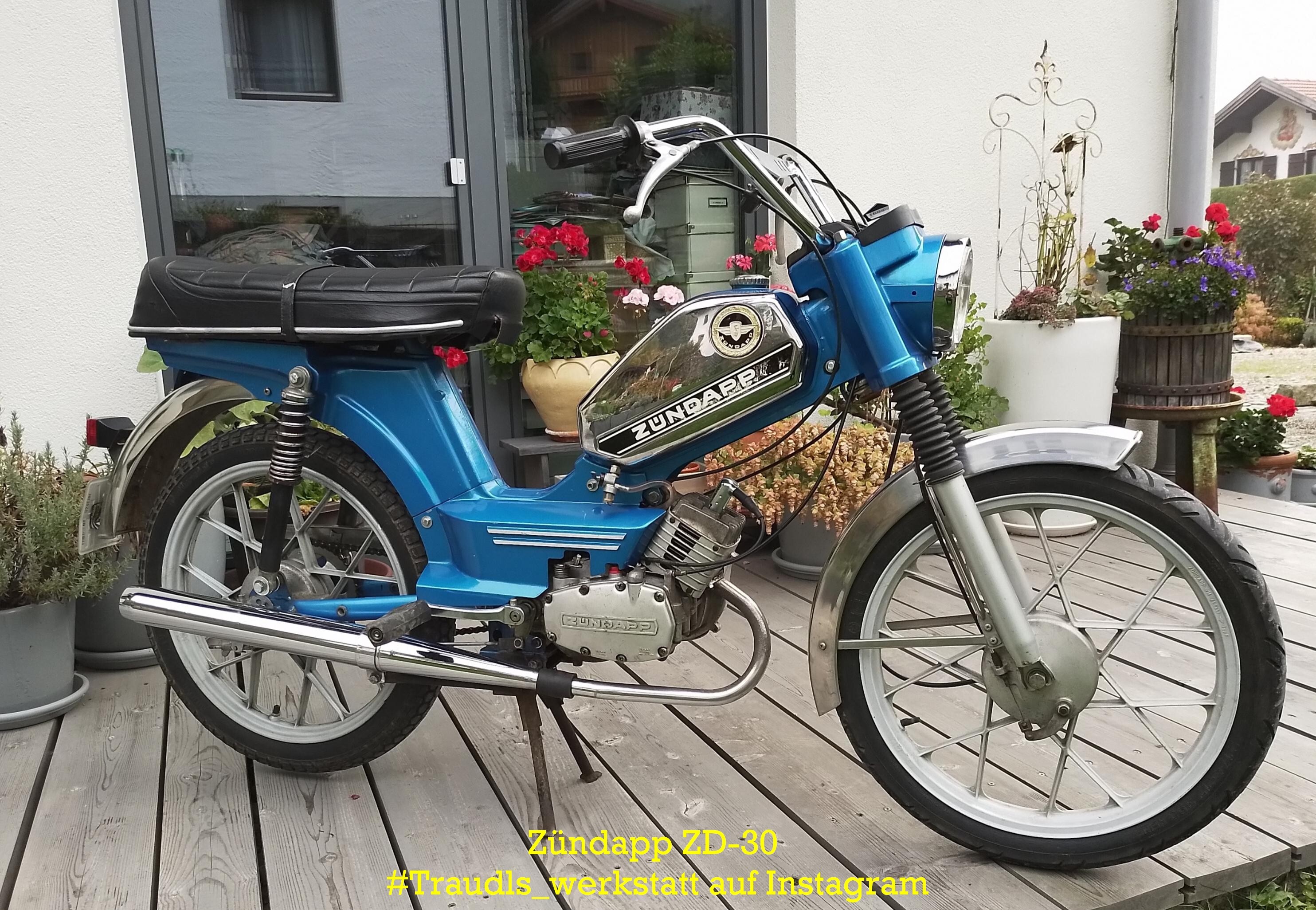 Ursprünglich wurden sie nicht in die Niederlande geliefert, aber mittlerweile gibt es hier in den Niederlanden genügend Exemplare, die herumfahren. Viel privater Import, vor allem in den letzten Jahren hat sich die Zündapp zum Kult-Moped entwickelt. Sie wurden sowohl in Deutschland als auch in Österreich und Schweden ausgeliefert. Der ZD30 wurde von 1977 bis 1979 bei Zündapp in München mit einer 2-Hand-Schaltung und dem bekannten schwarzen Sechskant-Motorblock hergestellt. Modellnummer 446. Der ZD-30 wird auch mit einem Automatikgetriebe geliefert. (photo)